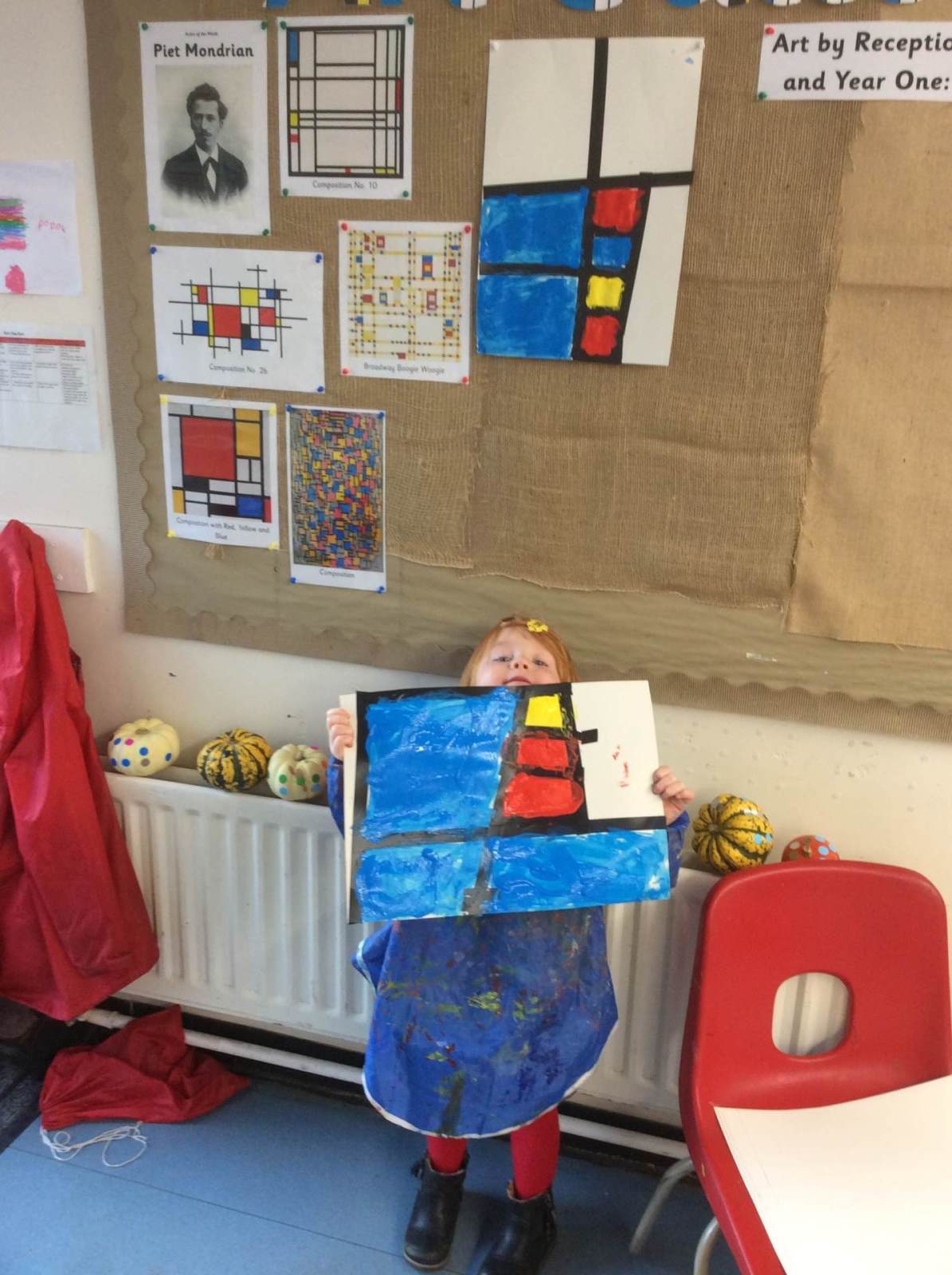 Week Four of this half term marked the conclusion of our Art Gallery and we had one final Artist of the Week - Piet Mondrian. The class loved his art work as they were particularly drawn to the grids and vibrant, block colours. We recreated his art work by sticking electrical tape to a piece of A3 paper and then painting the sections red, blue or yellow.